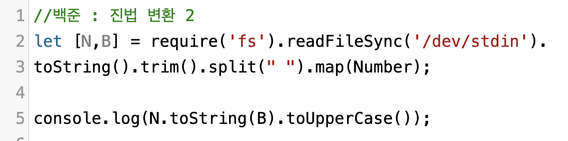 본격적으로 "나의 풀이"를 설명하자면 먼저 입력을 map(Number)을 사용하여 N과 B를 정수형으로 받아줍니다.