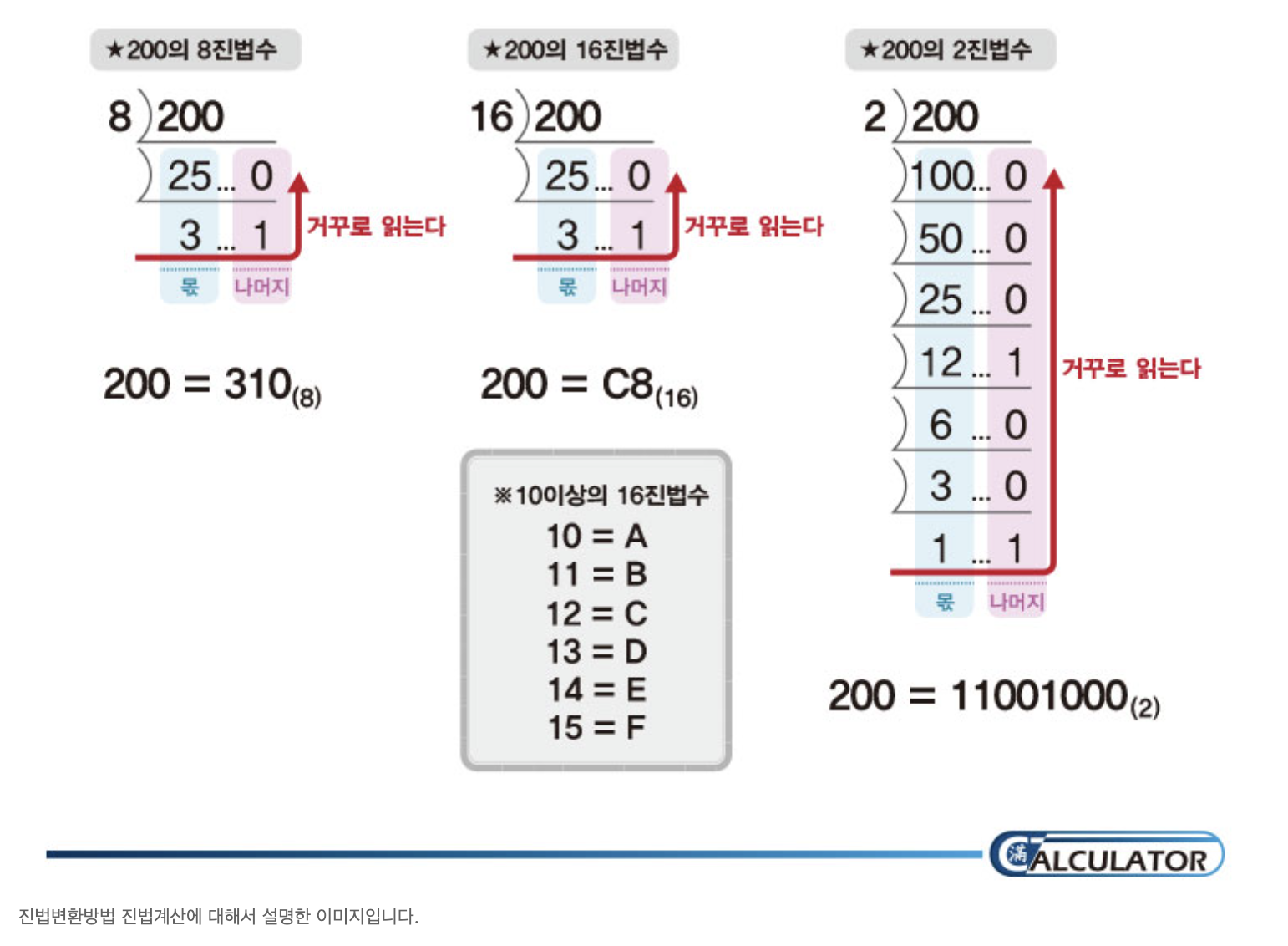 위와 같은 공식으로 계산을 하면 진법을 계산할 수 있습니다. 이 방법으로 계산하면 어느 진법이든 계산이 가능합니다.