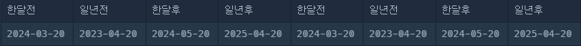 , ADD_MONTHS(TO_DATE('2020-03-31','YYYY-MM-DD'),-1) as 한달전