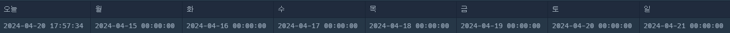 | 'd' / 'dy' / 'day' | 주초 일요일 일자 |