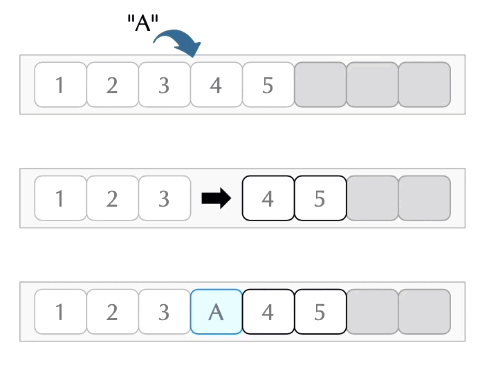 이때 자리에 있던 기존의 데이터는 삭제되고, 새로운 데이터가 대체되어 들어갑니다.