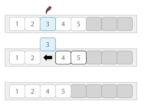 4. 데이터를 중간에 삽입/삭제할 경우에 빈 공간을 채워야 하기 때문에 요소를 앞뒤로 자동으로 이동시키므로 성능이 떨어질 수 있습니다.