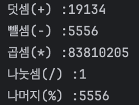 System.out.println("덧셈(+) :" +bigNumber1.add(bigNumber2));