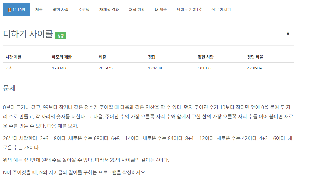 그리고 cnt을 증가시켜 주고 n과 새로운 수를 비교하여 같으면 while문을 빠져나와 마무리했습니다.
