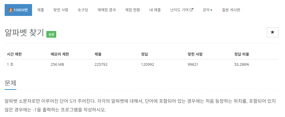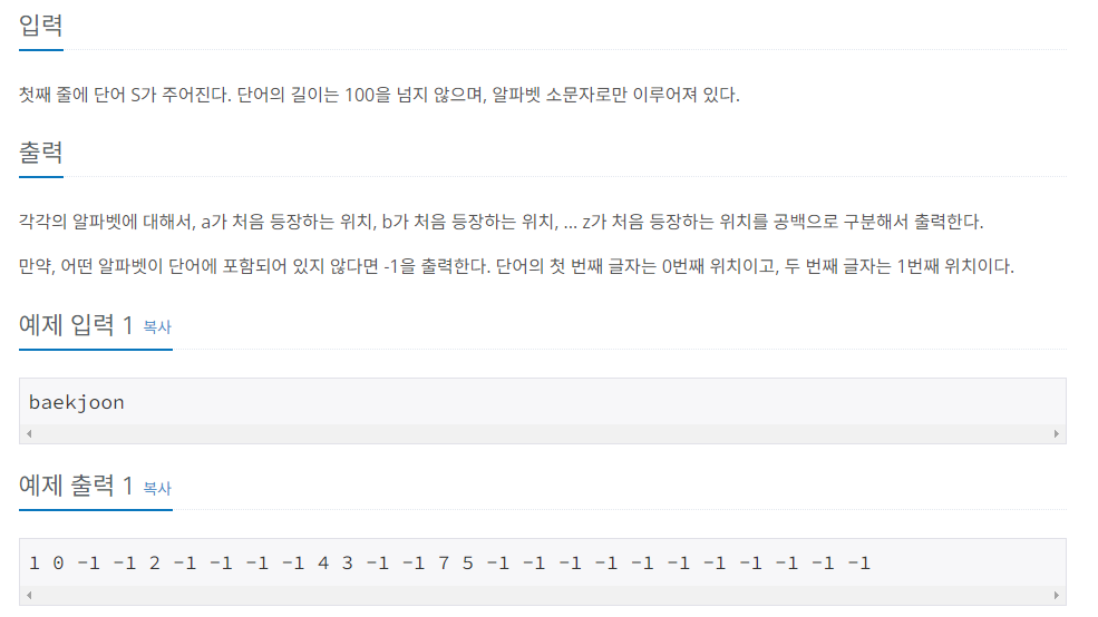 그러면 길이가 26인 문자열 배열 alphabet에 "-1"이 저장됩니다.