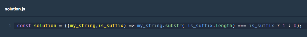 문자열 my_string과 is_suffix가 주어질 때, is_suffix가 my_string의 접미사라면 1을, 아니면 0을 return 하는 solution 함수를 작성해 주세요.