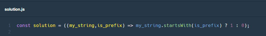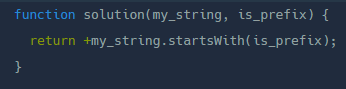 문자열 my_string과 is_prefix가 주어질 때, is_prefix가 my_string의 접두사라면 1을, 아니면 0을 return 하는 solution 함수를 작성해 주세요.