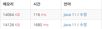10배가 넘는 속도 차이를 보이고 있습니다. 당연한 것인 게 처음 풀이는 while문과 if문이 많았지만 리팩터링 한 코드는 반복문 없이 공식으로 구했기 때문에 당연합니다.