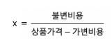 ➡️ 판매 개수 (상품 가격 - 고정 비용) = 고정 비용