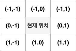 - x 좌표는 변화 없음 (0) y 좌표가 1 감소 (-1)