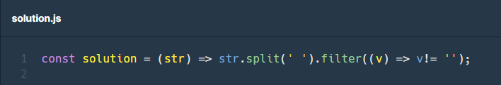 그다음 공백을 기준으로 나눠준 문자열 str을 filter() 함수를 사용하여 요소가 존재한다면 (값이 있다면) 새로운 배열을 만들어서 마무리 했습니다.