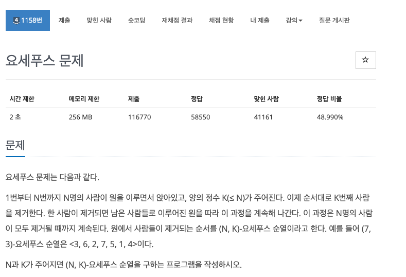 이번 문제는 요세푸스 순열에 대한 문제입니다.