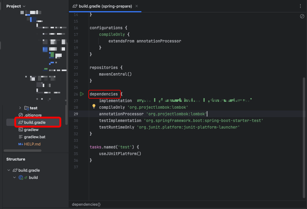 1. build.gradle 파일을 열고, Lombok 의존성을 추가합니다.