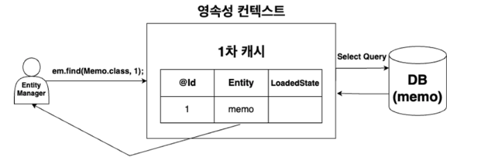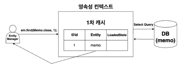 - em.find(Memo.class, 4)λ₯Ό ν΅ν΄ μν°ν°λ₯Ό μ‘°νν©λλ€. μ΄λ μν°ν°λ μμμ± μ»¨ν μ€νΈμ μν΄ κ΄λ¦¬λ©λλ€.
