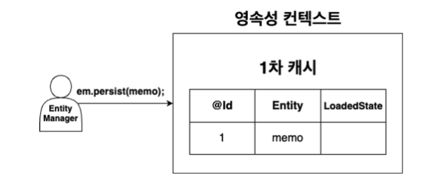 em.persist(memo); λ©μλκ° νΈμΆλλ©΄ memo Entity κ°μ²΄λ₯Ό μΊμ μ μ₯μμ μ μ₯ν©λλ€.