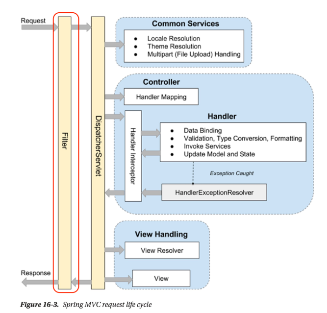 그러나 필터는 웹 애플리케이션에서 클라이언트의 요청이 서블릿이나 컨트롤러로 전달되기 전에 처리되는 컴포넌트입니다.