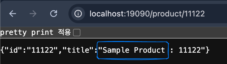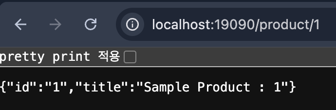 - localhost:19090/product/1 호출 시 정상 호출 되는 것을 확인할 수 있습니다.