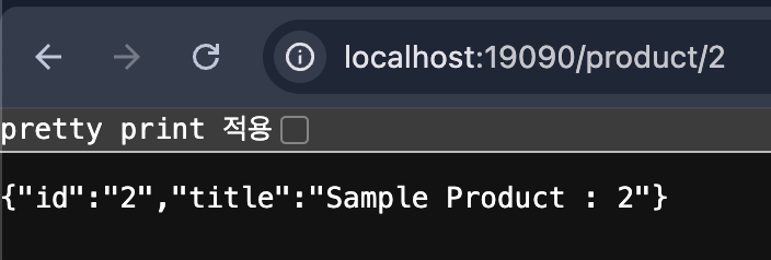 - localhost:19090/product/2 호출 시 정상 호출 되는 것을 확인할 수 있습니다.