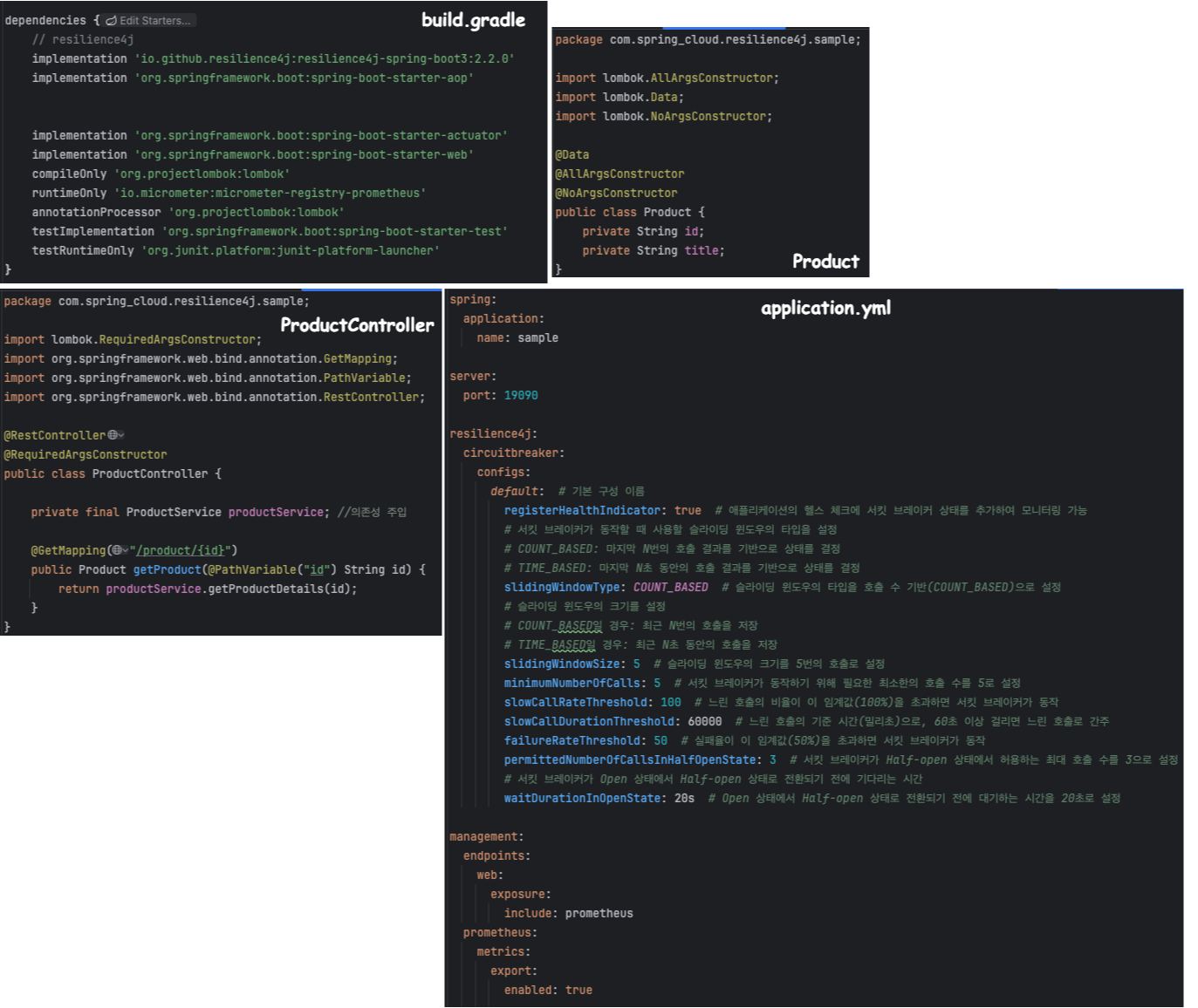 Resilience4j의 설정은 application.yml이나 application.properties 파일에서 설정할 수 있습니다.