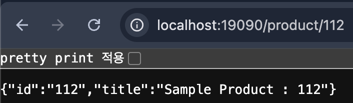 - localhost:19090/product/112 호출 시 정상 호출 되는 것을 확인할 수 있습니다.