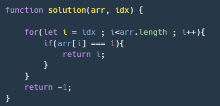 정수 배열 arr가 주어집니다. 이때 arr의 원소는 1 또는 0입니다. 정수 idx가 주어졌을 때, idx보다 크면서 배열의 값이 1인 가장 작은 인덱스를 찾아서 반환하는 solution 함수를 완성해 주세요.