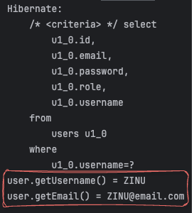 "/api/products"로 접속하여 Log를 확인해 보면 user.getUsername()와 getEmail()이 정상적으로 나오는 것을 볼 수 있습니다.