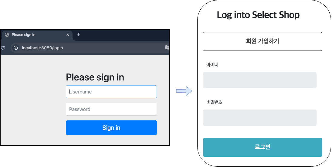 Default 로그인 페이지가 아닌, 내가 만든 로그인 페이지가 정상적으로 나오는 것을 확인할 수 있습니다.