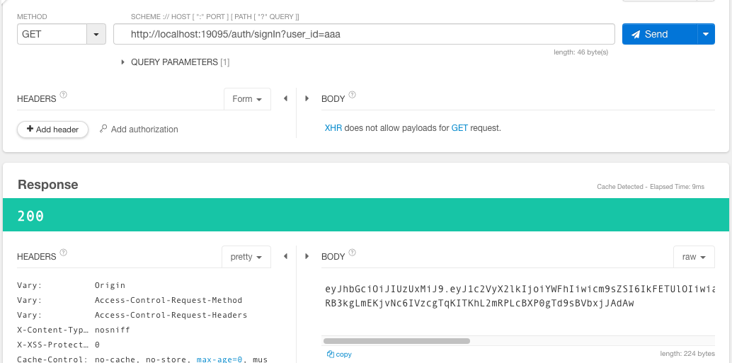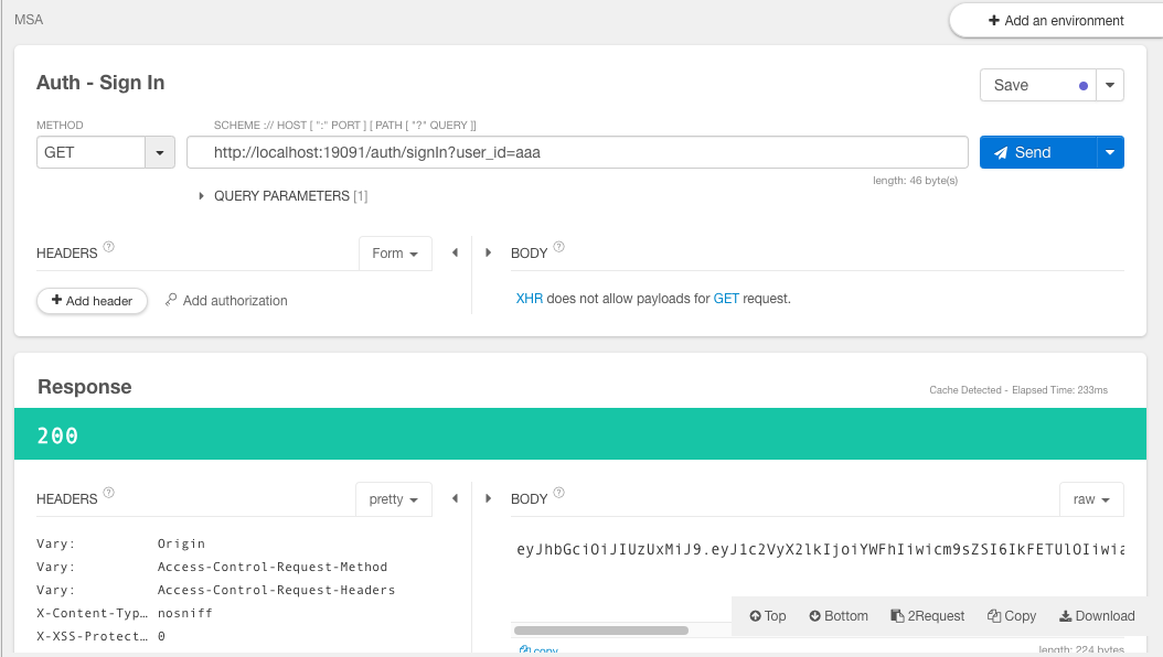 "19095/auth/signIn?user_id=aaa"로 접속했을 때 POSTMAN이나 Talend를 통해서도 확인을 해보면 위와같이 정상적으로 토큰을 확인할 수 있습니다.