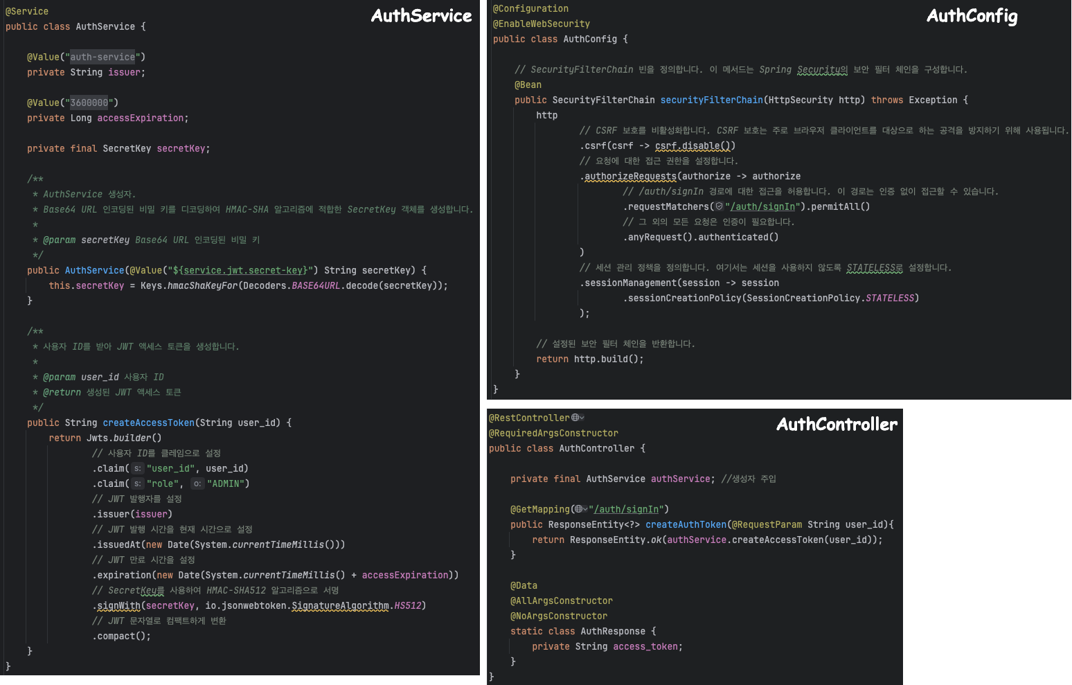 - user_id를 기반으로 JWT 토큰을 생성하고 사용자 인증을 처리하는 서버입니다.