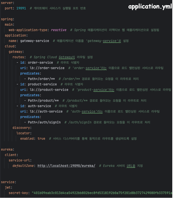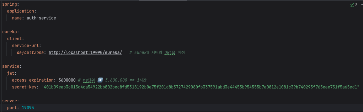 - JWT 서명 검증에 사용할 비밀 키를 application.yml 파일에서 가져옵니다.