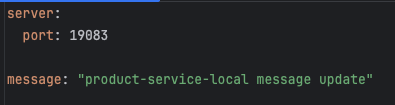"product-service-local message" ➡️ "product-service-local message update"로 변경한 후, Config Server 애플리케이션을 재시작해 보겠습니다.
