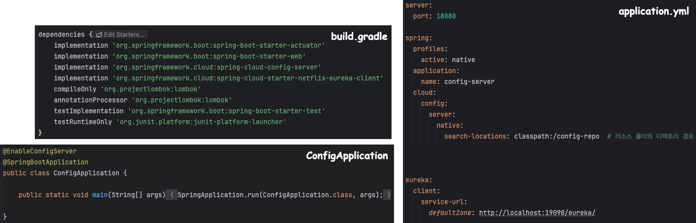 - application.yml에서 설정된 spring.cloud.config.server.native.search-locations를 통해 설정 파일이 저장된 위치를 지정합니다.