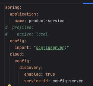 - application.yml에서 spring.config.import 속성을 사용하여 Config Server로부터 설정을 가져옵니다.