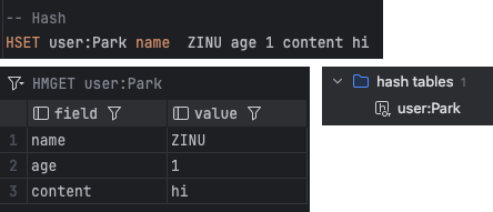 - 설명: 해시에서 하나 이상의 필드와 값을 설정합니다. 필드가 이미 존재하면 값을 업데이트합니다.