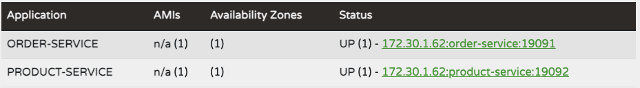 Eureka 서버를 확인해보면 위와 같이 ODER-SERVICE와 PRODUCT-SERVICE가 연결된 것을 확인할 수 있습니다.