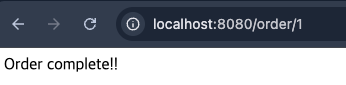 localhost:8080/order/1로 요청을 보내면 컨트롤러에서 반환한 "Order complete!!"가 정상적으로 반환되었습니다.
