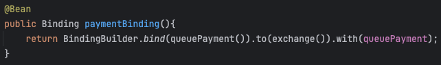 - queuePayment 큐를 exchange 교환기에 바인딩합니다.