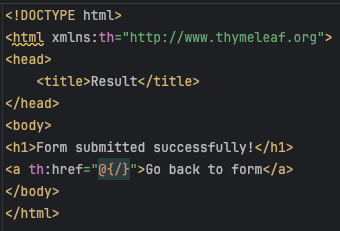 localhost:8080으로 접속하면 위와 같이 컨트롤러에서 루트 경로로 지정한 from이 나옵니다.