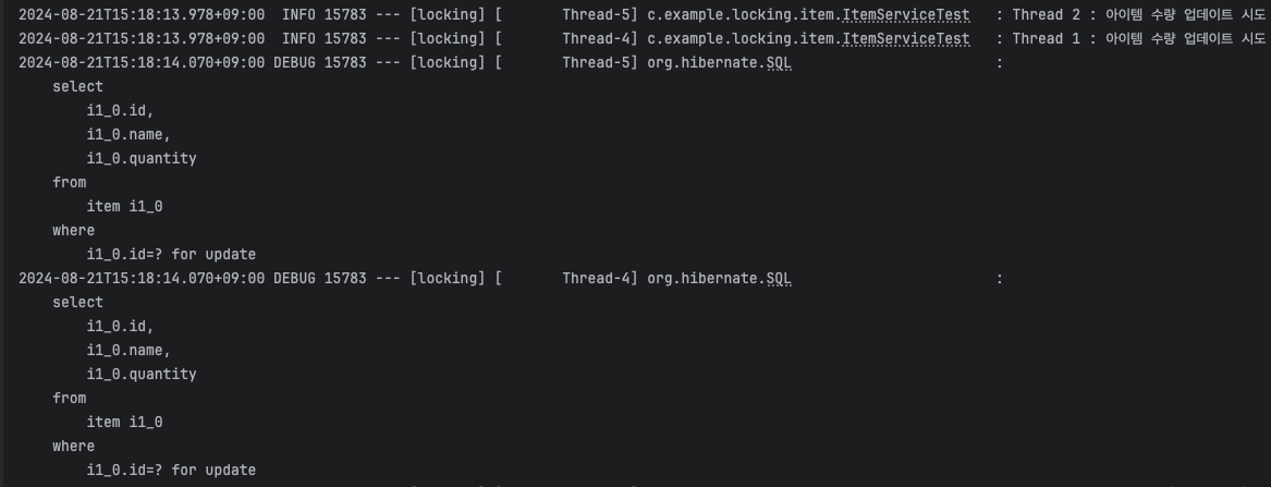 logger.info("스레드 1: 아이템 수량 업데이트를 시도합니다.");