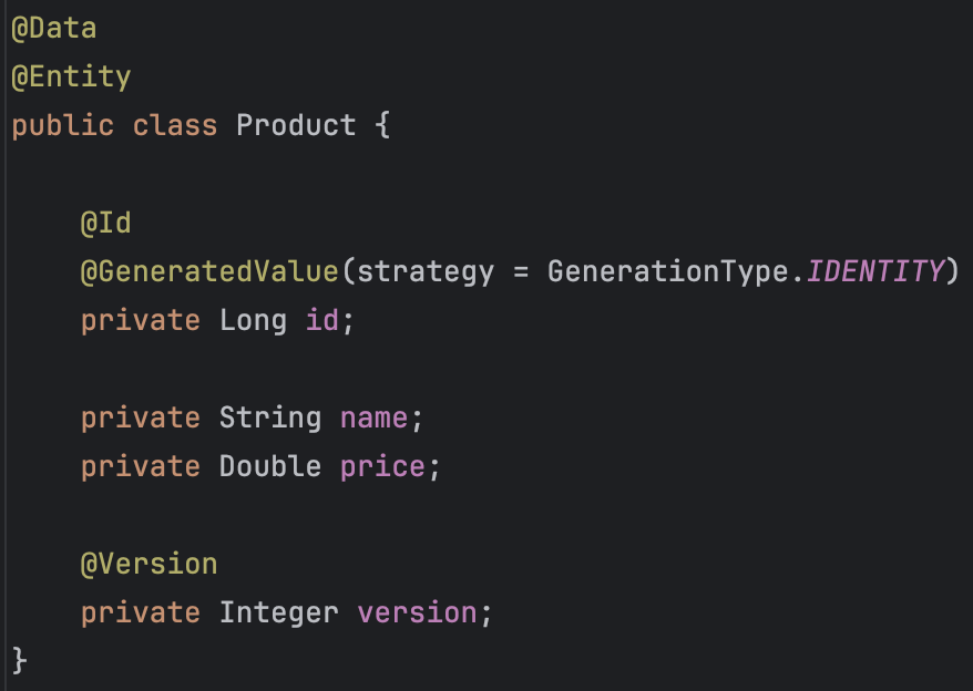 - @Version 어노테이션이 붙은 version 필드는 낙관적 락을 구현하기 위해 사용됩니다.