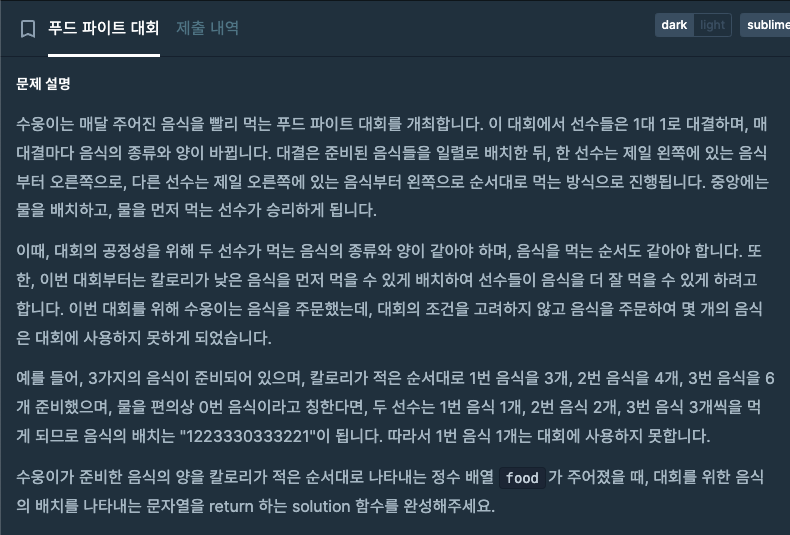 "푸드 파이트 대회"문제는 문자열을 조작하는 간단한 문제입니다. 저는 처음에 StringBuilder의 reverse()메서드를 사용하여 풀이를 했는데, 실수한점이 있어 정리하고자 합니다.