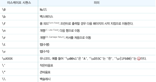 이스케이프 문자(escape character, 제어 문자)는 문자 제어 코드로, 화면에 출력하는 문자가 아니라 문자 출력을 제어하는 문자이며 \(역슬래쉬)와 한 개의 문자와 결합하여 작성합니다.