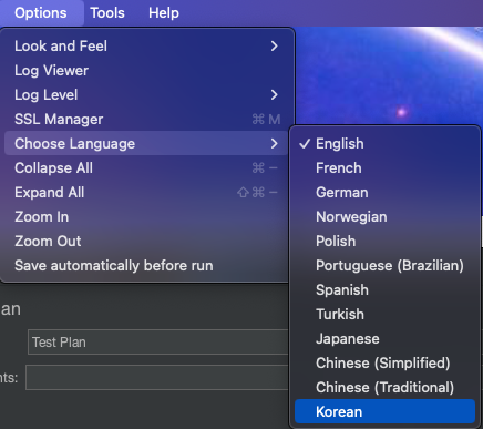 Jmeter 언어 선택