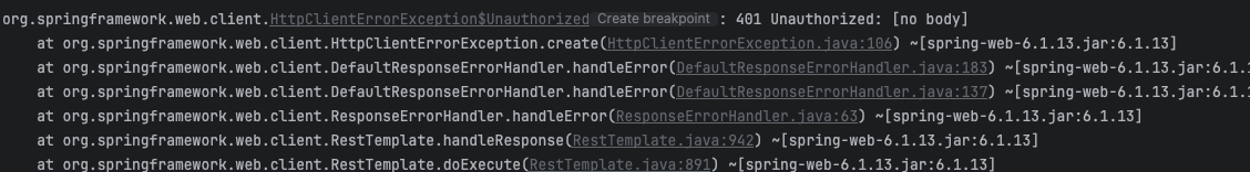 org.springframework.web.client.HttpClientErrorException$Unauthorized: 401 Unauthorized: [no body]