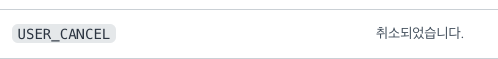 토스페이먼츠의 SDK 에러 코드에 따르면, 사용자가 결제를 취소했을 때 USER_CANCEL이라는 에러 코드가 반환됩니다. 이는 결제 실패와는 다른 경우로, 사용자가 결제를 직접 취소한 상황을 나타냅니다.