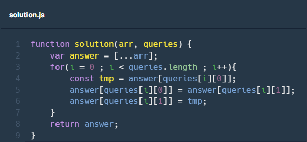 각 query마다 순서대로 arr [i]의 값과 arr [j]의 값을 서로 바꿉니다.