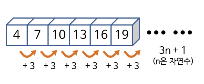 - 첫항이 4이고 공차가 3인 등차수열