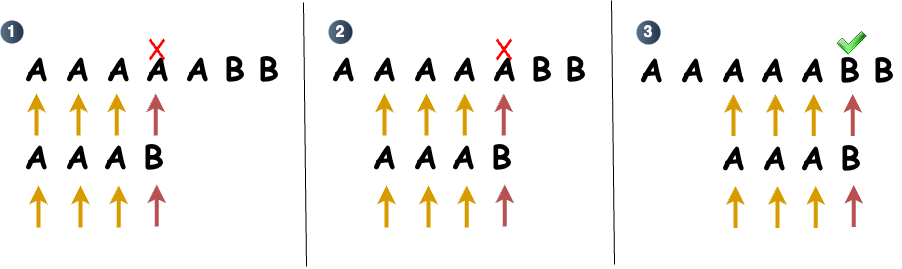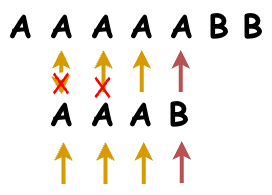 마찬가지로 "AAAAABB"와 "AAAB"를 예시로 설명해 보겠습니다.