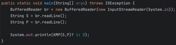// S가 P를 포함하고 있다면 1을 출력, 아니면 0을 출력