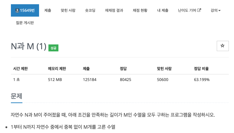 이번 "백준 - N과 M (1)" 문제는 1부터 N까지의 자연수 중에서 길이 M인 순열을 모두 구하는 문제입니다.